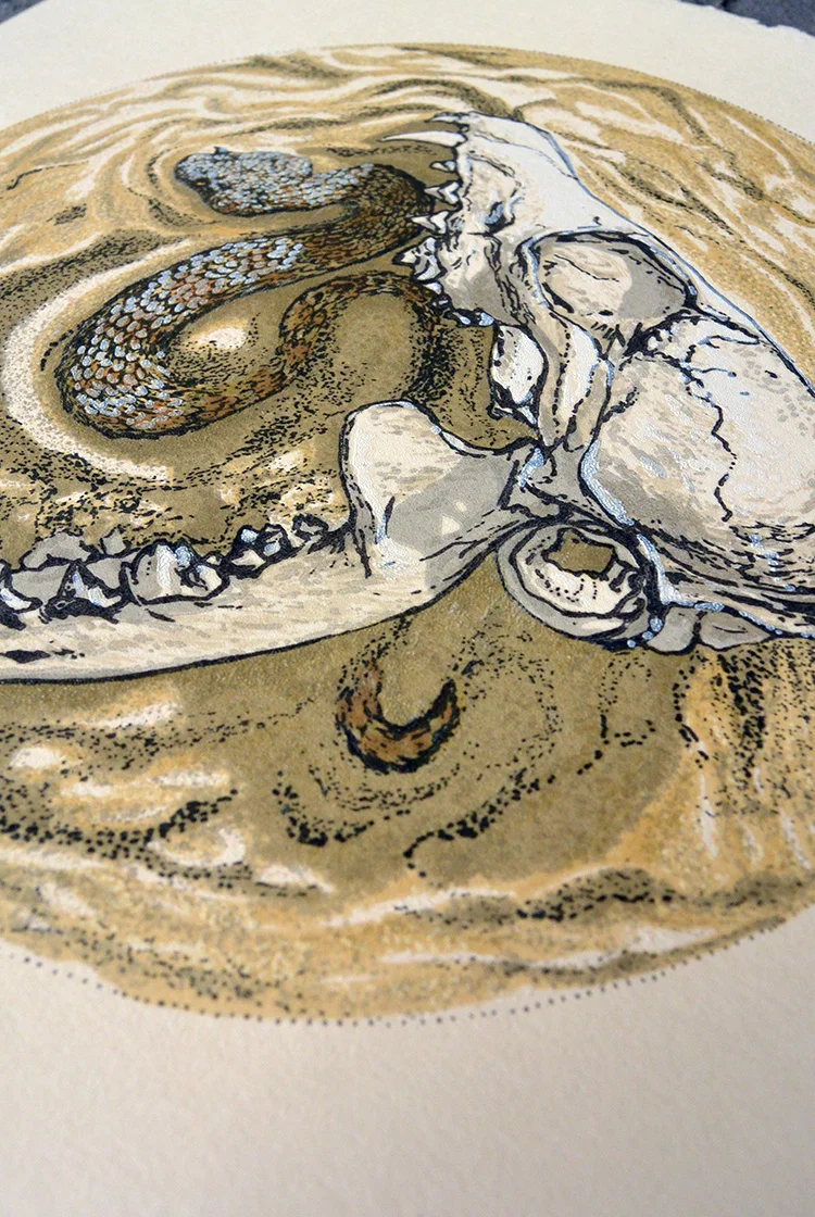 "Viper At Vixen Trap" 9"x9" (22.86 cm squared) Screenprint Produced 2015, edition of 42